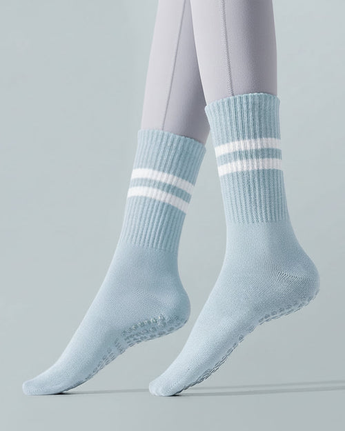 3 Pairs Striped Grip Socks with Anti-Slip & Shock Absorbing Soles